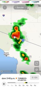 De acuerdo con imágenes de radar meteorológico, en la región de Sonoyta y alrededores se están registrando tormentas fuertes, con núcleos de lluvia intensa y posibles descargas eléctricas.