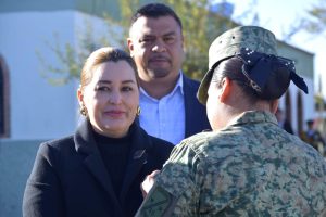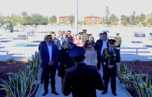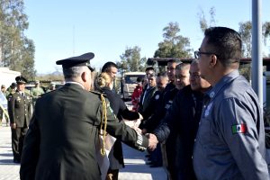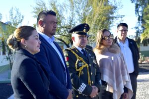 A esta ceremonia que representa la estrecha coordinación que mantenemos con las fuerzas federales para garantizar la paz y el orden en nuestra región, me acompañaron también la Secretario de este H. Ayuntamiento, Profra. Miriam León León; el Director de Acción Cívica, Aarón Flores, y el Comisario de Seguridad Pública, Víctor Manuel Aguilar.