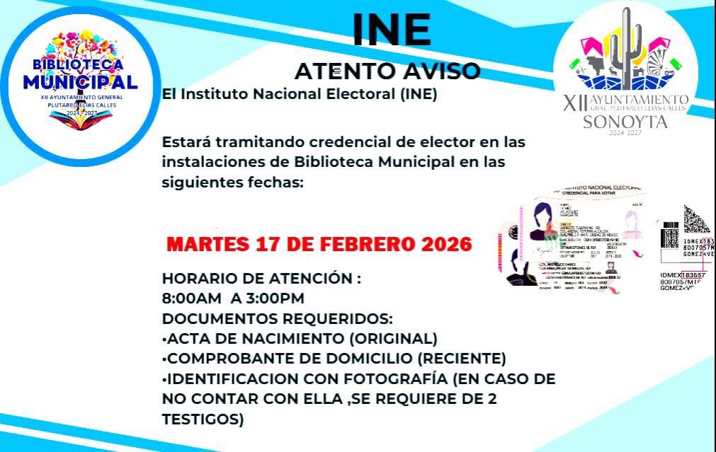 Hoy ya se encuentra trabajando el personal del INE en las instalaciones de la Biblioteca Pública Municipal desde las 8 de la mañana y hasta las tres de la tarde; sin embargo, debido a la alta demanda de los servicios de trámite de credencial, se anuncia que mañana martes 17 de febrero, también estarán prestando sus servicios. Mismo horario, mismo lugar.
