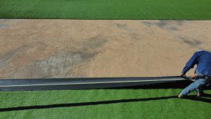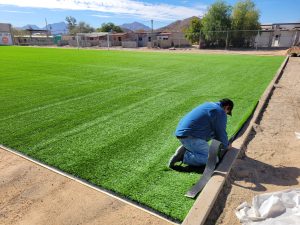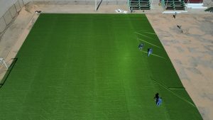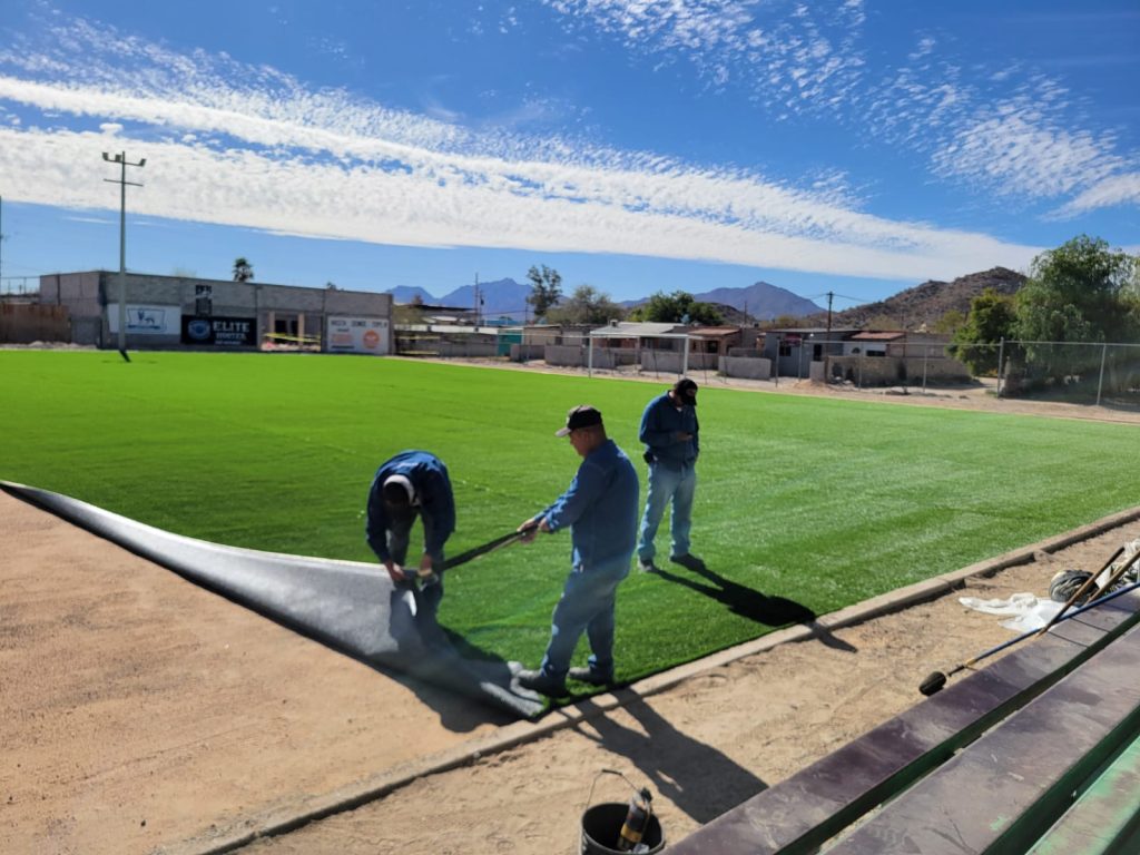 Avance en la remodelación y cambio de pasto sintético en la cancha 7 ubicada en el Ejido Hombres Blancos.