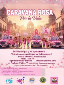 Al finalizar el desfile en la plaza Benito Juárez se premiará al mejor carro decorado y daremos pie a la plática sobre prevención, concientización y la importancia de la detección temprana. Habrá además donación de cabello para mujeres en tratamiento, servicio de antígeno prostático para hombres, el encendido del Kiosko rosa y el tendedero de las víctimas del cáncer de mama, un homenaje lleno de amor y respeto.