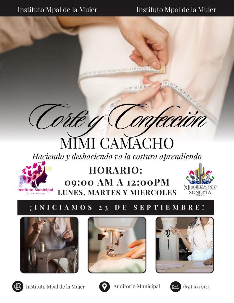 ¡Dale vida a tu talento y aprende a coser como toda una profesional! Iniciamos este 23 de septiembre Horario: Lunes, Martes y Miércoles de 9:00 am a 12:00 pm Auditorio Municipal Costo: $200 semanales Contamos con máquinas disponibles para que practiques durante tus clases.No dejes pasar esta oportunidad de aprender, crear y transformar con tus propias manos. ¡Inscríbete ya! Informes: (651) […]
