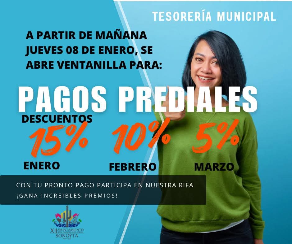VIDEO “DESCUENTOEN TU PAGO PREDIAL TESORERIA” La ventanilla de la tesorería municipal para el cobro del impuesto predial, estará abierta a partir del jueves 8 de enero desde las ocho de la mañana a las tres de la tarde. Hay descuentos y participación en las rifas para los ciudadanos que cumplan con este pago durante […]
