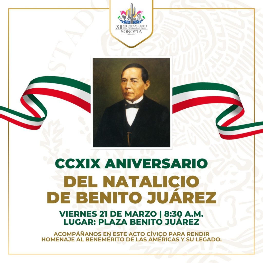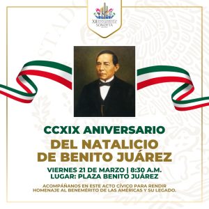 Te invitamos a la ceremonia cívica en honor a Benito Juárez García, una de las figuras más importantes de nuestra historia.