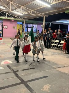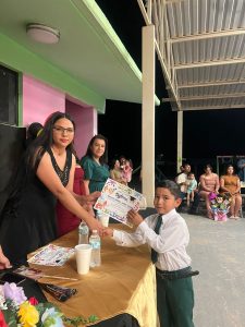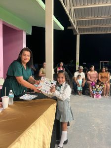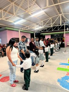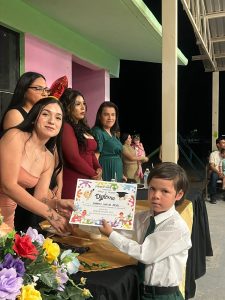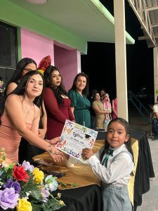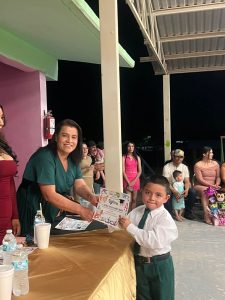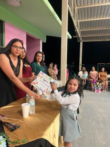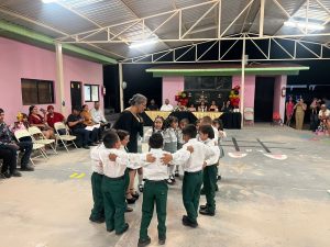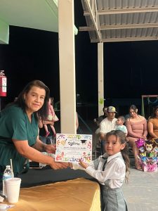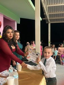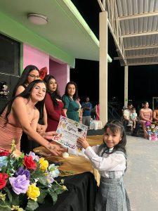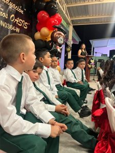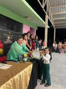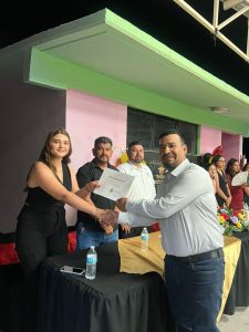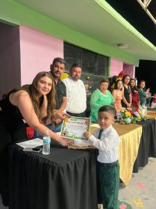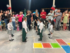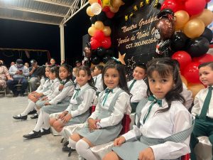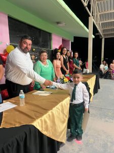 El día de ayer por la tarde atendimos la invitación al Jardín de Niños “Oasis” dirigido por la Profesora Karen Guadalupe Argüelles, ubicado en el Ejido Desierto de Sonora, para dar cabal cumplimiento al acompañamiento en la ceremonia de fin de cursos y entrega de documentos para los 15 pequeños graduados que el próximo ciclo escolar asistirán a la Primaria.