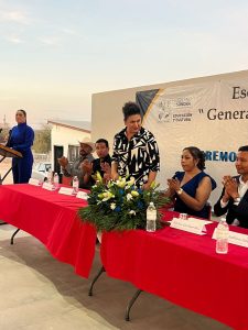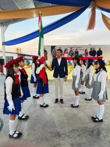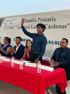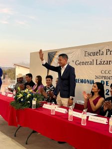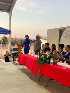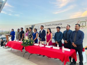 En representación de este XII Ayuntamiento, la Mtra Rentería se hizo acompañar por la Lic. Lic. Danitzya Lizeth Rivera Santos, Directora de la Casa de la Cultura y compartieron mesa de presidium con el Lic José Belemino Sánchez López, integrante del Comité de Comisariado Ejidal; el Mtro. Javier Ariel Fonseca Ruiz, Director de la Esc. Telesecundaria 360H; la Mtra. Karen Guadalupe Argüelles Izaguirre, Directora del Preescolar Oasis; la Mtra. Andréa Trinidad Luna Valle, en representación del Mtro. David Corral Moroyoqui Supervisor de la Zona Escolar Federal 071; Prof. Andrés Pacheco Celaya, Profesor de sexto grado del plantel; la Mtra. Andrea García Hernández, Secretaria General de la Delegación D-1-97; así como el C. Isaías Brena Magaña, Presidente de la Asociación de Padres de Familia.