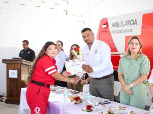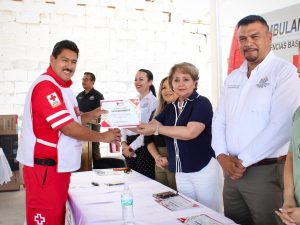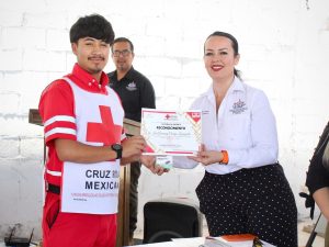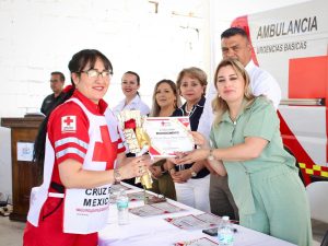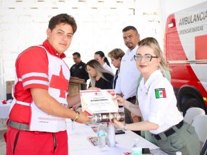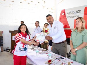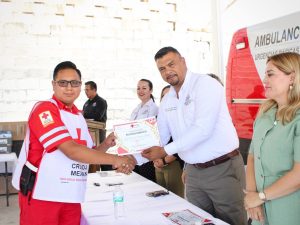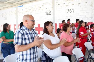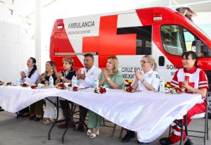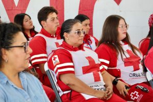 Me acompañaron en la mesa del presidium mi esposa; la Primera Dama y Presidenta del Sistema DIF Municipal, Psic. Beatriz Adriana Montoya Garibaldi; la Secretario del H Ayuntamiento, Profra. Miriam León León; así como las Regidoras del XII Ayuntamiento, Lic. Angélica López Mena y C. Guadalupe Barragán Sarabia; además de la Enlace Estatal de Protección Civil, C. Karla Viridiana Betancourt Chávez y la anfitriona y Coordinadora Local de Socorros de la Cruz Roja Mexicana Delegación Sonoyta, T.U.M. Rosario Bernal Sánchez.