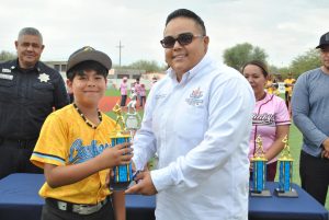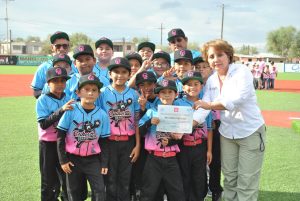 El día de ayer 15 de noviembre, se llevó a cabo con éxito la clausura de la Copa de Beisbol “Por la Amistad” 6° Edición, en donde contamos con las autoridades del XII Ayuntamiento y en representación de nuestro Presidente Municipal, el Ing. Uriel López, asistió la Secretario del H. Ayuntamiento, la Mtra. Miriam León.