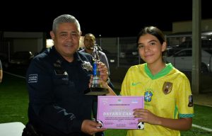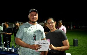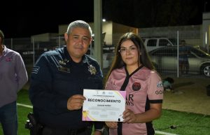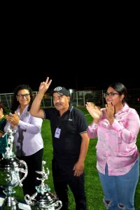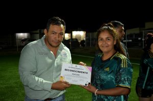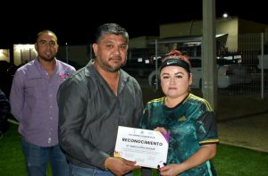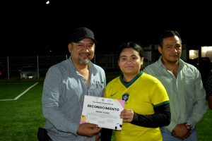 En la entrega de la premiación estuvo en mi representación la Mtra. Erika Rentería, Síndico Municipal y autoridades de las diferentes dependencias de esta XII Administración; así como la mesa directiva de la liga, representados por Rebeca López, Presidenta; Diana Martínez, Secretaria y Alejandro Salazar, Tesorero.