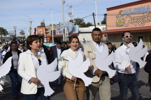 Agradezco, como se lo hicimos saber a Aaron Cooper, Director de ISDA y a su personal con la entrega de un reconocimiento, por su disposición y disponibilidad para seguir haciendo posible la organización de este desfile que ya es una tradición para nuestros pueblos. De igual manera a la nación Tohono O’odham por estar presentes y activos en esta convivencia por la paz. De igual manera, un agradecimiento especial a la Secretario de este H. Ayuntamiento Profra. Miriam León y a la Lic. Danytzia Rivera, Directora de la Casa de la Cultura, por la organización de tan lucido evento.