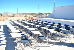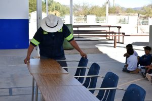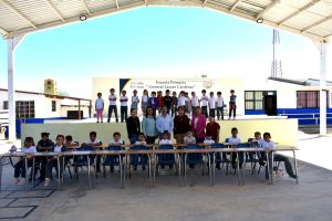 Más tarde, hasta el Ejido Desierto de Sonora fue en mi representación la Secretario del H. Ayuntamiento, Miriam León; así como la Síndico Municipal, Mtra. Erika Rentería, para atender y hacer entrega de la petición de 20 mesabancos más para la Primaria Gral. Lázaro Cardenas que dirige su Directora la Profra. Andrea Luna.
