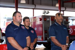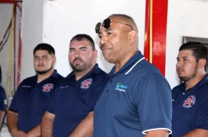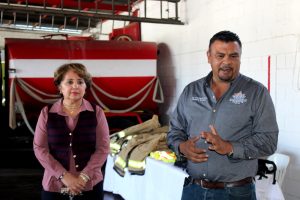 Me acompañó a la entrega la Secretario del H. Ayuntamiento, Profra. Miriam León, así como el Tesorero y el Comandante de esta noble institución Carlos Arvizu y Ángel Gámez, respectivamente, además del personal de turno.