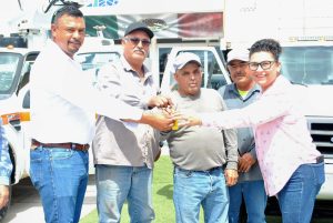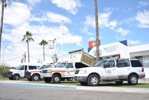 Hoy, miércoles 7 de mayo, en las afueras del palacio administrativo, nos reunimos los trabajadores y administrativos del XII Ayuntamiento para hacer entrega de 4 unidades que vienen a reforzar la plantilla con la que contamos para ofrecer un mejor servicio en las áreas de servicios públicos y obras, así como en la de traslados que nos solicitan las diferentes organizaciones civiles.