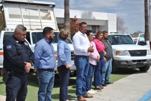 Me acompañaron al acto formal de entrega la Síndico Municipal, Profra Erika Rentería, la Secretario del Ayuntamiento, Profra. Miriam León León; la Tesorera Municipal, Lic. Carina Flores; así como el Lic. Isaac Barraza, Contralor; el Ing. Favián Flores, Director de Obras y Servicios Públicos; además del Comisario del Mando Único Policial, Víctor Manuel Aguilar Cisneros.