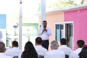 Me han acompañado a estas entregas mi esposa y Presidenta del DIF Municipal, Psic. Beatriz Montoya; la Síndico Municipal, Profra Erika Rentería; el Regidor Étnico, Isidro Soto; la Secretario del Ayuntamiento, Profra. Miriam León; el Coordinador de CECOP, Sabino Eduardo Medina; la Tesorera Municipal, Lic Karina Flores; el Contralor Municipal, Lic. Isaac Gregorio Barraza; así como el Director de Obras y Servicios Públicos, Ing. Favián Flores y el Comisario del Mando Único Policial, Víctor Manuel Aguilar. De igual manera agradezco a los funcionarios que se han dado a la tarea de acompañarnos en esta entrega, parte del importante equipo de trabajo que conforma la XII Administración municipal.