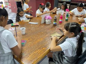 Como cierre, los alumnos participaron en una actividad de pinturas rupestres en la Biblioteca Municipal, facilitado por la Directora de ese recinto C. Rebeca López y la Mtra. Diana Martínez, Directora del Instituto Municipal de la Juventud, fomentando la creatividad y el reconocimiento de nuestras raíces ancestrales.