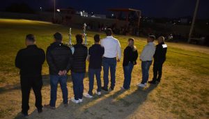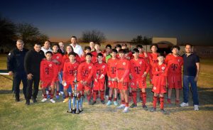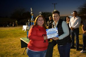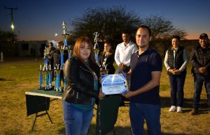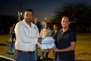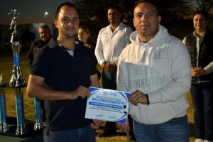 A la ceremonia de entrega de trofeos y reconocimientos me acompañaron mi esposa Psic. Beatriz Montoya, la Síndico Profra. Erica Rentería además de funcionarios de las diferentes dependencias del XII Ayuntamiento. Entregamos además de los trofeos a los equipos campeones, el trofeo de mejor goleador de la liga que cayó en la persona del jugador Alejandro Palomares quien anotó 30 goles. También al mejor portero Geovanni Cedeño; ambos del equipo Lobos. Por otro lado reconocimos la enorme labor de los Directores técnicos de cada equipo: Marco Antonio parra preciado de Cobras, Raul villalobos Ríos de Potros, Isabel Ruiz Villalobos de Diablos, Jorge Ivan Espinoza Valdez y a Felipe de Jesús Ruiz Carrillo del equipo campeón Lobos ALM, a quien también entregamos un reconocimiento especial por su excelente organización y trabajo como Presidente de la Liga de Futbol Juvenil Municipal.