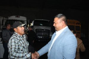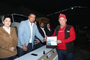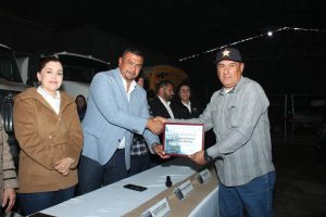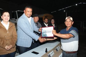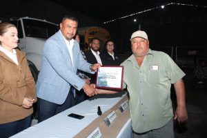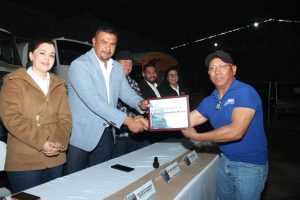 En este emotivo acto, tuve el honor de estar acompañado por mi esposa y Primera Dama, la Psic. Beatriz Montoya; el Líder Sindical de los trabajadores, el C. Miguel Nuñez; la Síndico Municipal, Mtra. Erika Rentería; la Secretaria del H. Ayuntamiento, Profra. Miriam León; así como el Director de Obras y Servicios Municipales, Ing. Favián Flores, a quienes agradezco su acompañamiento en la mesa, así como a los funcionarios de esta XII Administración que estuvieron presentes.