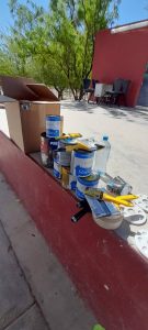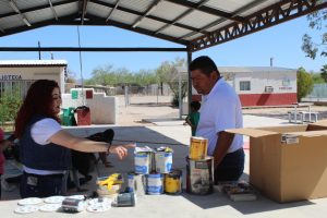 El pasado miércoles 9 de abril, tuvimos la oportunidad de asistir a la Escuela Primaria Año de Juárez ubicada en el Ejido Morelia con la finalidad de hacer la entrega formal de material de pintura para dar mantenimiento a la explanada principal, donde fuimos recibidas por el Director José Ubaldo Aguilar Parra acompañado de alumnos y padres de familia.