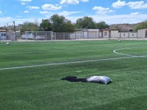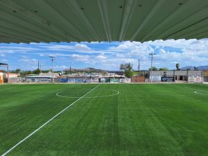 Igualmente, en el campo 7, mejor conocido como el sintético del Hombres Blancos, donde el agua corriente de las lluvias removió el corcho del pasto sintético que se aplica para reducir la temperatura del campo, mejorar la amortiguación de impactos, al tiempo que ofrece mayor comodidad y seguridad para los jugadores; fue distribuido de nuevo dentro del campo y se aplicó una cantidad adicional de este material.