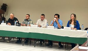 Encabezaron la reunión el Lic. Máximo Moscoso de la Secretaría de Infraestructura, Comunicaciones y Transportes (SICT); el Lic. Carlos Alberto Flores de la AMIC, el Lic. Roberto Lugo, Delegado del Gobierno del Estado; el Ing. Lirio del Castillo de CAPUFE; el Lic. Jorge González Madrid, Director de Transportes en el Estado; el Capitán Álvarez, destacado en la Guardia Nacional en Sonora, además de Alcaldes y representantes de diversas dependencias de los tres niveles de gobierno.