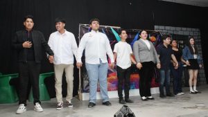 El pasado jueves 27 de abril, el Colegio de Bachilleres Plantel Sonoyta tuvo el placer de presentar su obra de teatro “El relato de Lucía” ante los alumnos de la Escuela Secundaria General Lic. Adolfo López Mateos, bajo la dirección del Grupo de Teatro Máscara, Cámara y Acción, conformado por Aaron Morales, Ivannia Betancourt, Jorge Ramírez, Fernanda Rodríguez, Isaí Burciaga, Adair Madrid, María Villa, Tadeo Acuña y la maestra de teatro y arte escénico, la doctora Raquel López. En colaboración con el Grupo Sierreño, quienes nos brindaron su apoyo con sus melodiosas voces e instrumentos musicales con gran entusiasmo. Agradecemos la asistencia de la Escuela Secundaria General Lic. Adolfo López Mateos y a cada una de las escuelas por su compromiso y dedicación a la instrucción de los jóvenes en el crecimiento educativo y cultural.
