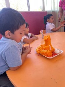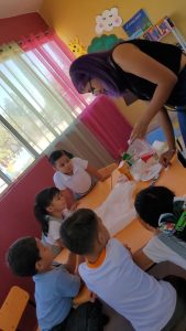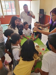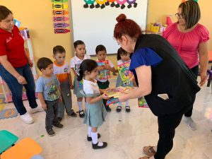 Jennifer Martínez, actual Reina de las Fiestas de las Flores, les acompañó y en colaboración con ellas, llevó varios experimentos para los niños como parte de las actividades que incluyó la lectura de cuentos y la entrega de libros de actividades para el kinder, además de un rico aperitivo.