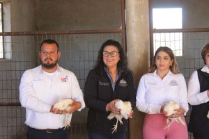 En el área de los gallineros estuvo también presente, junto a los pobladores del Valdez, la Subdirectora de Desarrollo Comunitario del DIF Estatal, Alina Fimbres y el personal de esta institución para instruir a los beneficiarios de este proyecto sobre los cuidados que deben tener para el mejor aprovechamiento de este criadero.