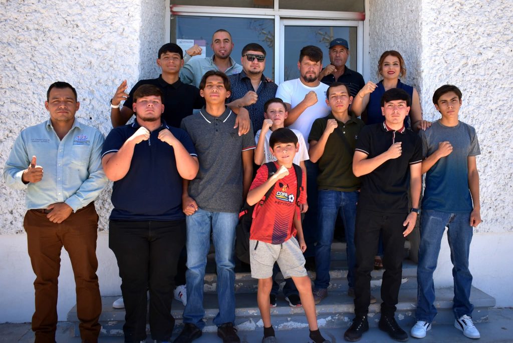 Felicitaciones a los padres que continúan apoyando a sus hijos en una de las varias manifestaciones deportivas que se practican con entrega y disciplina en nuestra comunidad. A ellos, los jóvenes que van a disputar un cinturón como pugilistas, les deseamos una buena jornada. Un agradecimiento especial a sus entrenadores: Ángel Medina Flores, así como de Francisco Abraham y Rogelio Guadalupe Esquer Soto.