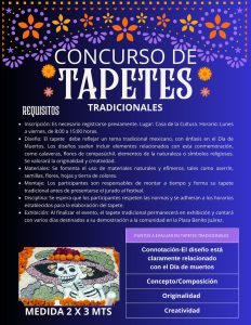 Al culminar el desfile de estos personajes que inicia a las seis en punto desde las instalaciones del H. Ayuntamiento, se llevará a cabo el concurso de altares y tapetes en la Plaza Benito Juárez.