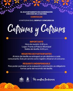 Este jueves 30 de octubre, les invitamos a participar en el tradicional concurso de catrinas y catrines.