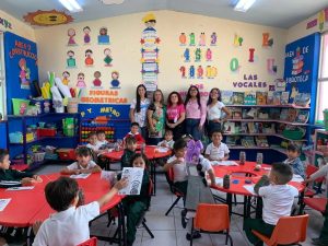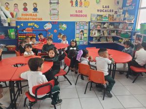 Siguiendo con nuestro programa denominado “Letras Viajeras” en la que estamos visitando diferentes institutos educativos de distintos niveles, para llevarles actividades lúdicas y de reforzamiento a los contenidos que ven en sus espacios; hoy tocó la visita al Jardín de Niños Oasis, ubicado en el Ejido Desierto de Sonora, donde la Maestra Encargada Eréndira Figueroa Tejeda y la Educadora Mtra. Diana Lizeth Ruiz Reyes se encargaron de recibirnos a la directora de Biblioteca Pública, Rebeca López así como a la Lic. Diana Martínez del Instituto Municipal de la Juventud y a Jennifer Martínez Reyna de las Fiestas de las Flores, con quienes los niños participaron de la lectura de cuentos y de la realización de experimentos.